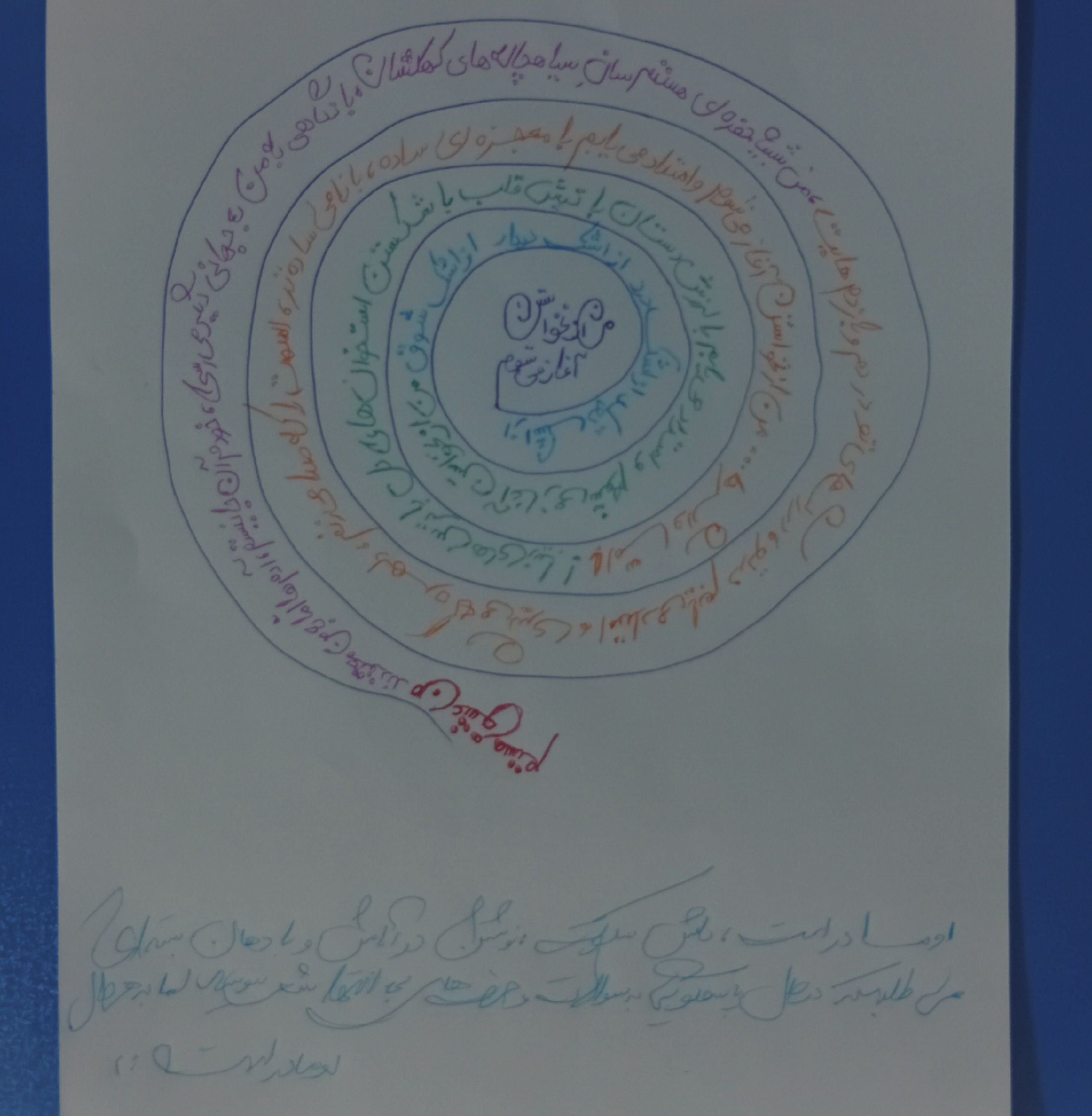 تحلیل دقیق متن توی ادامهمطلب قرار میدم البته هرکسی میتونه هرجور خواست برداشتش کنه... اگه دقت کنید من اول داخل حفره، جنین هست :) جنینی که در مرکز مارپیچ (یا سیاهچاله) قرار گرفته، استعارهای از هستهی هستیه ؛ نقطهای که همهچیز ازش آغاز میشه: عشق، آگاهی، حیات. من از نخواستن آغاز میشوم...و در مرکز شکل، جنین رو قرار دادم، یعنی تولد از دل امتناع در ظاهر "نخواستن"، اما در باطن، "خواستنِ پنهانِ هستی" نهفته ست.